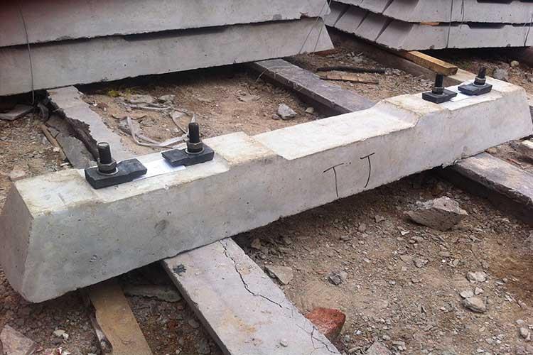 2、混凝土岔枕:混凝土岔枕是目前世界上主要采用的岔枕形式。隨著鐵路高速、重載發(fā)展的需要,用混凝土岔枕代替木岔枕已成為岔枕的發(fā)展方向?;炷敛碚聿脑摧^豐富,并能保證幾何尺寸,使軌道彈性均勻,提高了軌道的穩(wěn)定性。且不受氣候、腐朽、蟲蛀及火災的影響,使用壽命長。此外,混凝土岔枕還具有較高的道床阻力,可提高線路的橫向穩(wěn)定性。