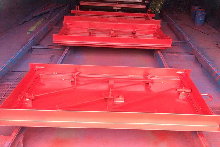 避難硐室密閉門使用對稱的方式進行安裝,它的每一個安裝件都是使用鋼材料來焊接成的。避難硐室密閉門的門扇是由井字結(jié)構(gòu)來進行焊接的,反風(fēng)的主要裝置是采用鋼管來插拴的,安裝的時候在合頁處涂上潤滑油,保證使用的靈活性。斜風(fēng)井防爆門關(guān)門時,各部件反向擺動,到關(guān)閉狀態(tài)時成矩形狀態(tài)。
